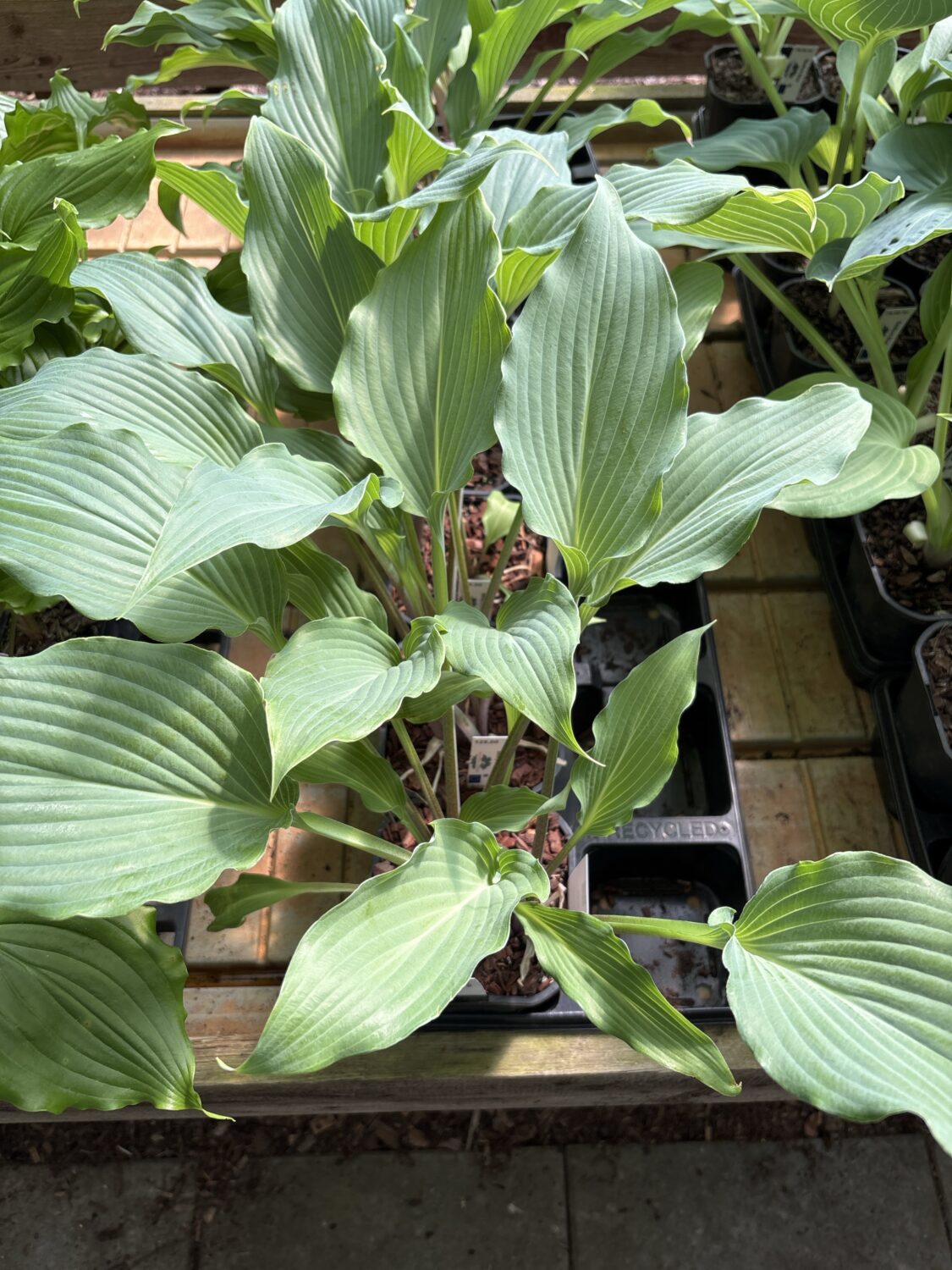 Hosta Becky’s Choice. Denne hosta har blågrønne blade med let kruset kant.