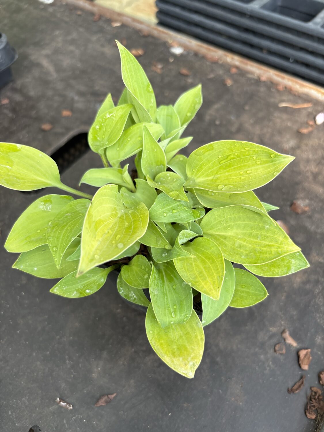 Hosta Saketini. Denne hosta har hjerteformede gulgrønne blade