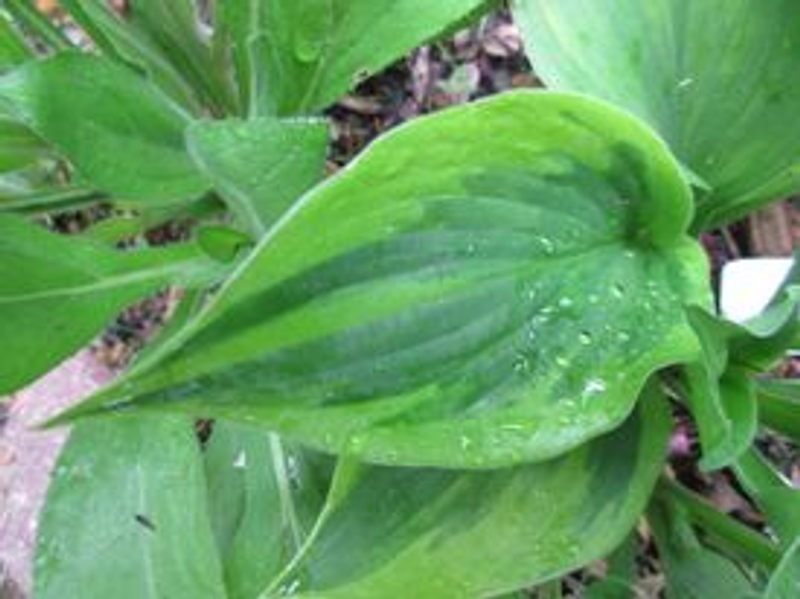 Hosta Tatooine. Denne hosta har tykke grågrønne blade med en bred gulgrøn kant. Kanten fremstår lysere end det der ses på billedet.